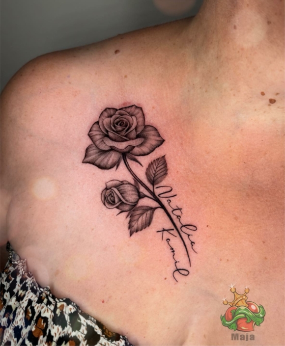 To jest dziewczyna, która zrobi napis, watercolor, graficzne wzory… nie boi się żadnej pracy. Chętnie podejmie się mniejszych i większych wyzwań na Waszej skórze 🙂
